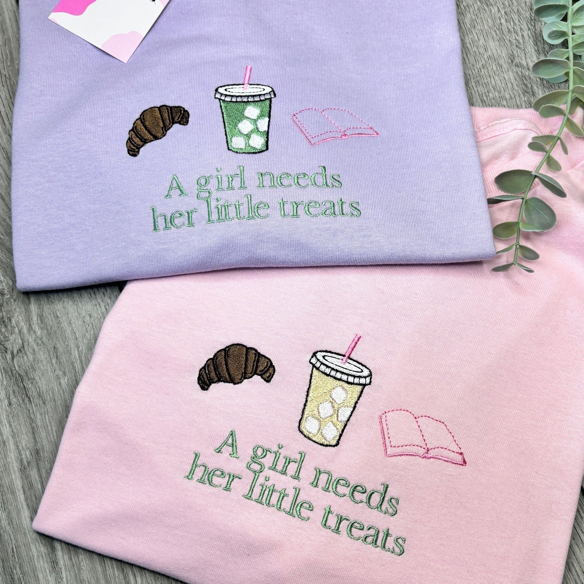 Indulge yourself with our Little Treats Embroidered sweatshirt! Choose from our matcha or iced latte embroidery to match your coffee craving and book of the day. This slightly oversized sweatshirt is the perfect excuse to treat yourself 💓