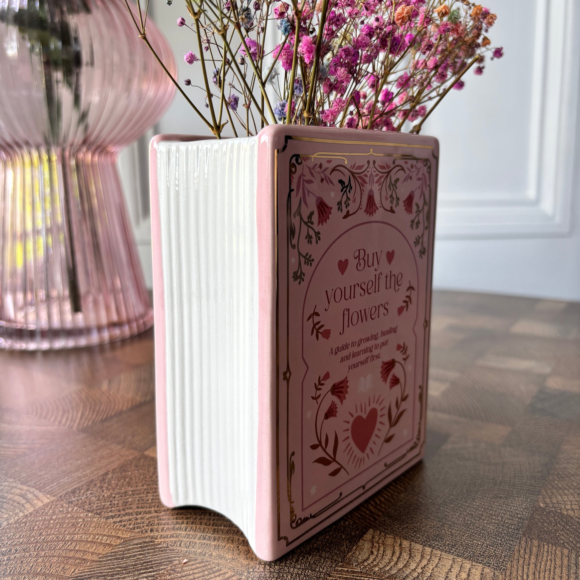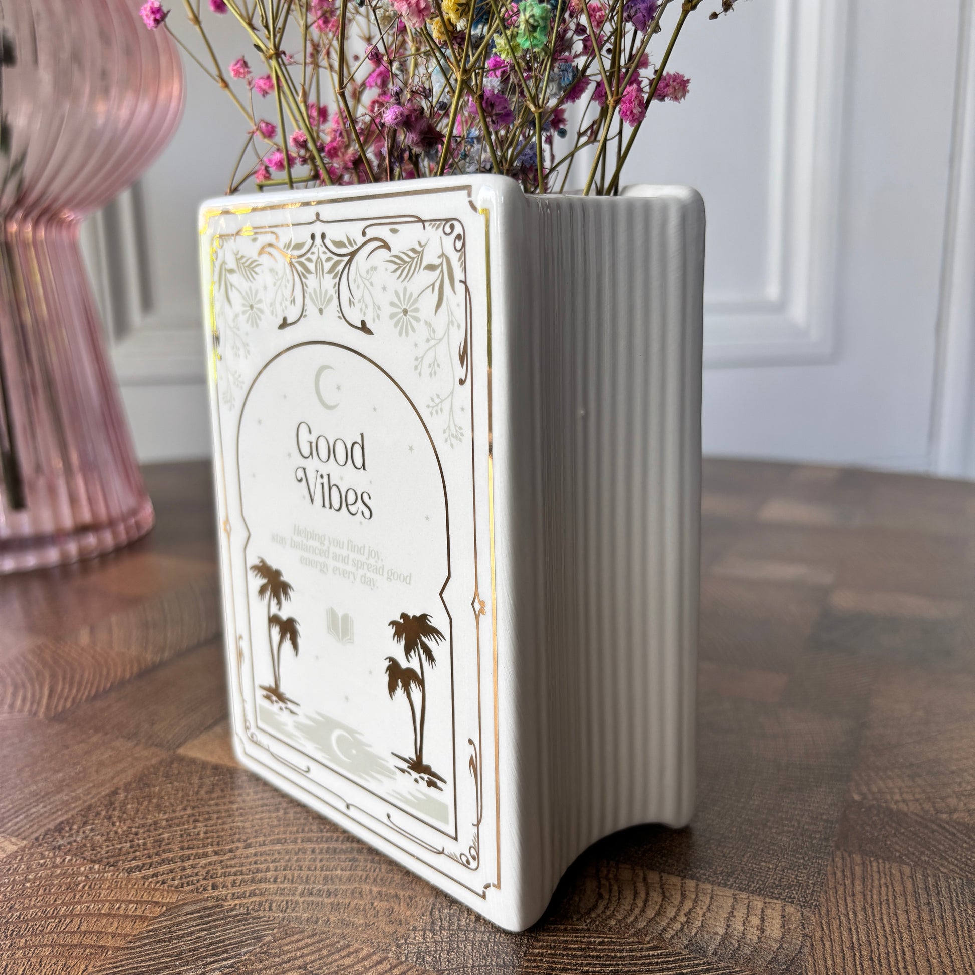 Bring a splash of literary fun to your space with this green ceramic vase shaped like an upright book. Perfect for book lovers, it holds 600ml of fresh or dried flowers and fits beautifully on bookshelves, desks, or cozy reading corners. At 14.7cm high, 11.1cm wide, and 6.5cm deep, itβs a charming way to mix your love of blooms with your love of books.