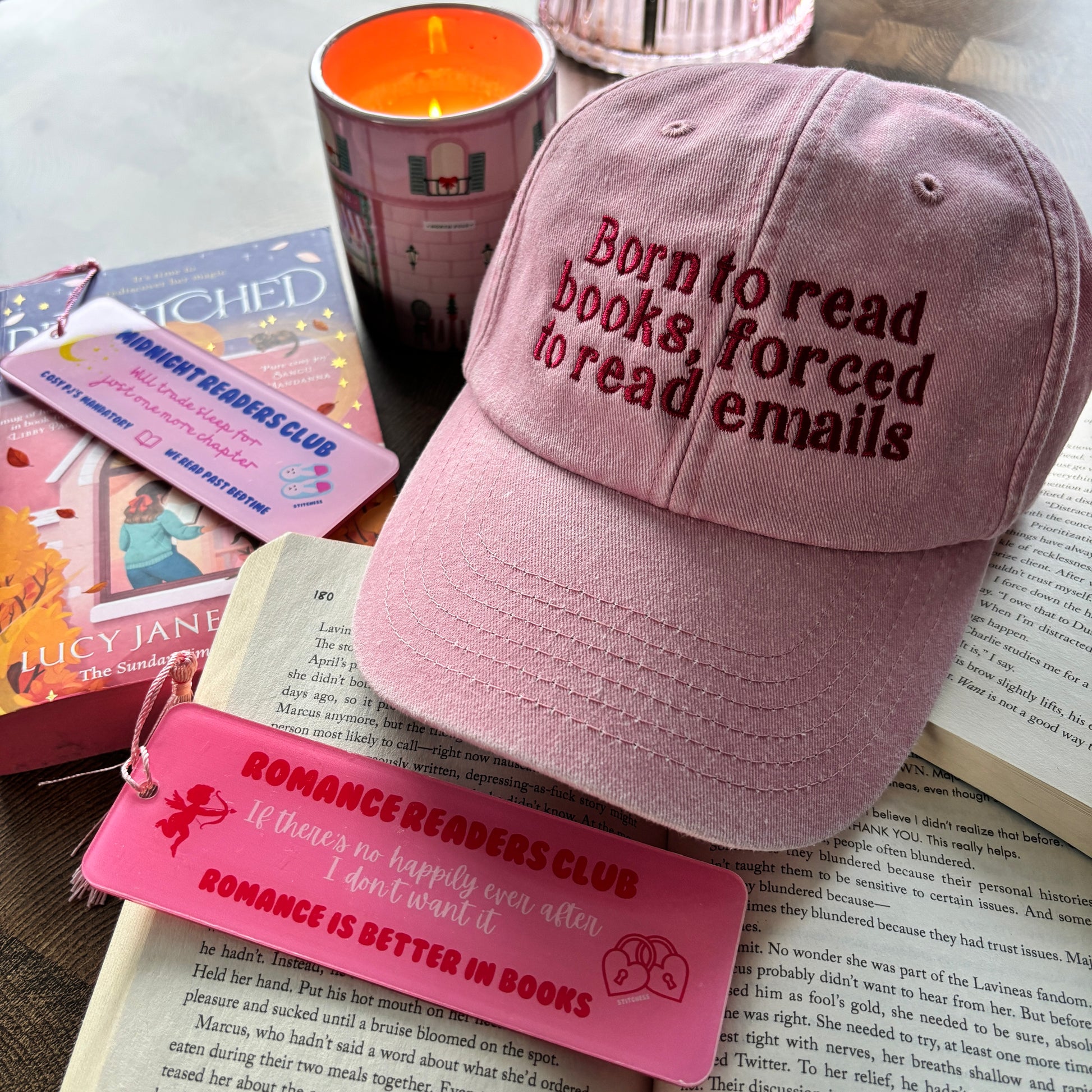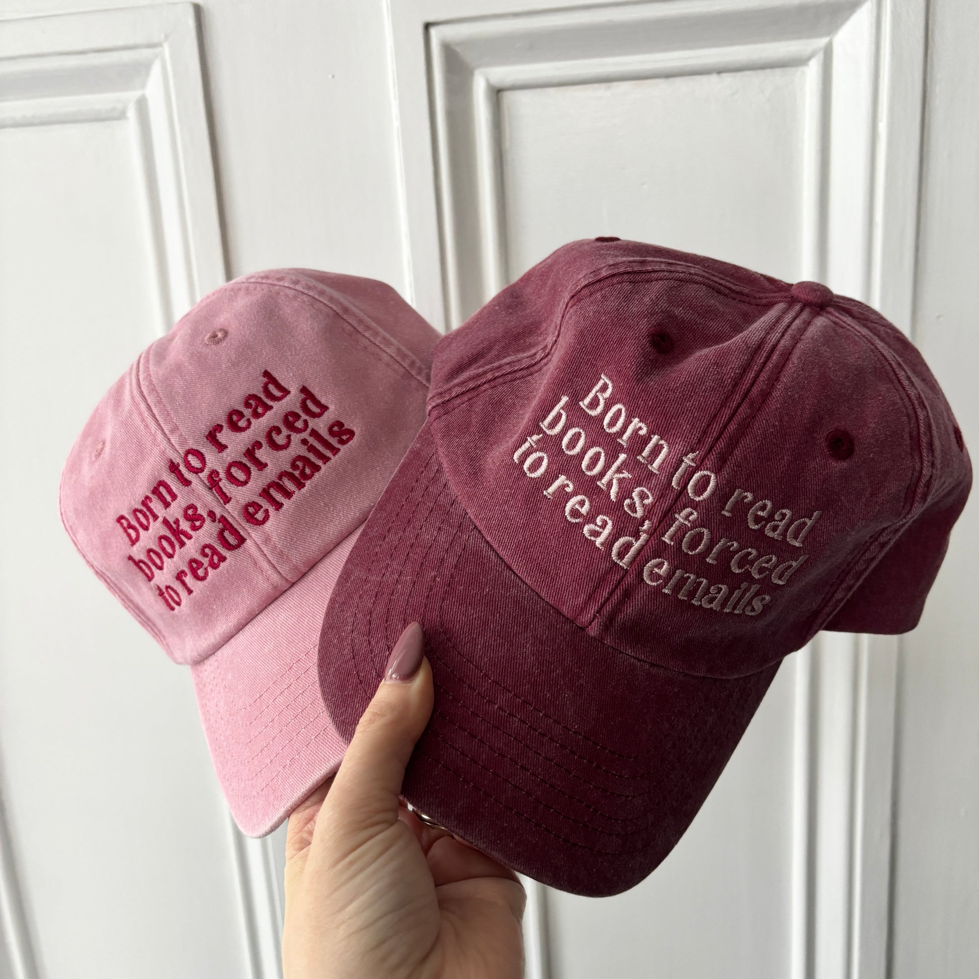 BORN TO READ BOOKS FORCED TO READ EMAILS EMBROIDERED CAP