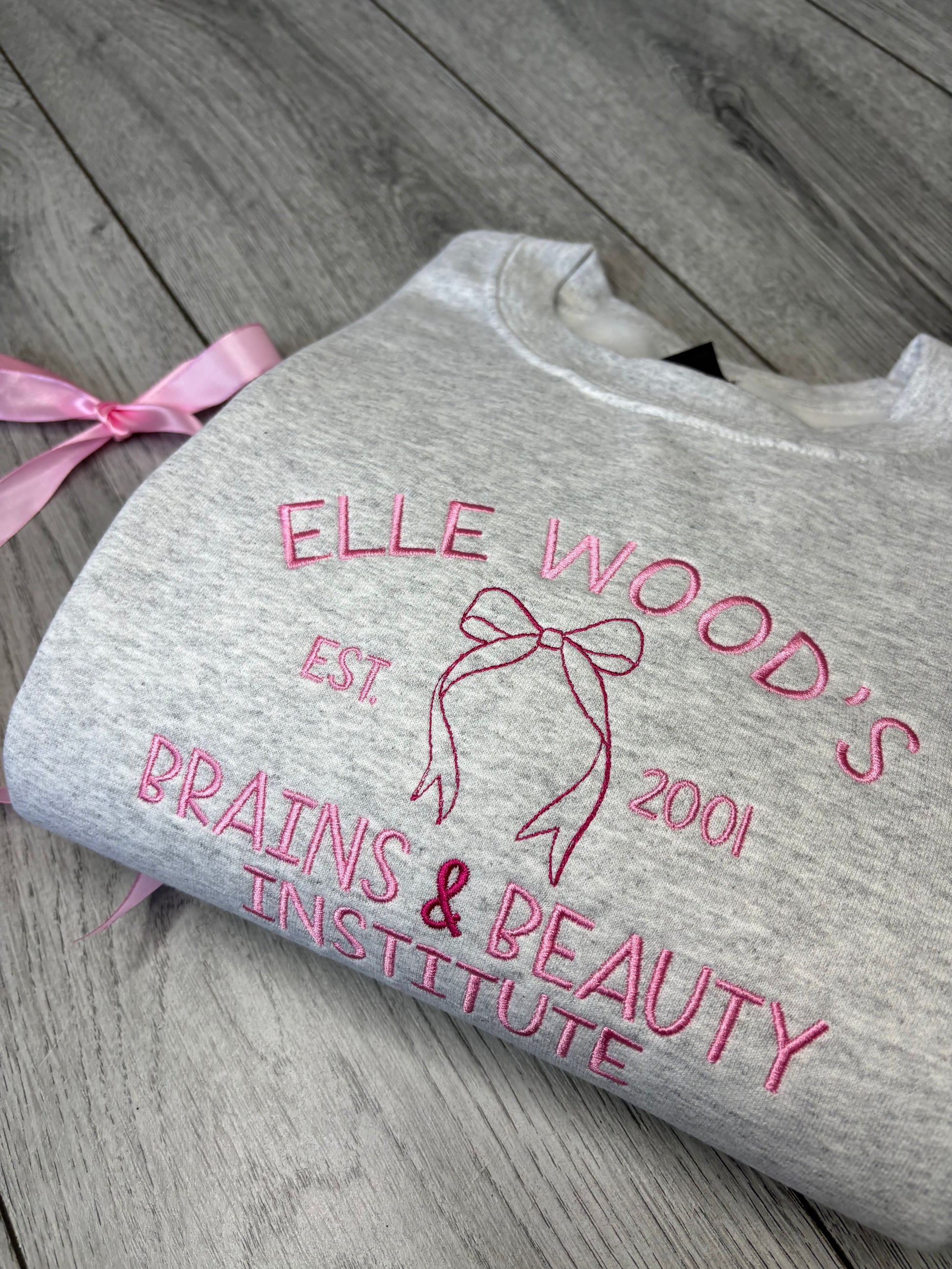 ELLE WOODS BRAINS & BEAUTY INSTITUTE EMBROIDERED SWEATSHIRT