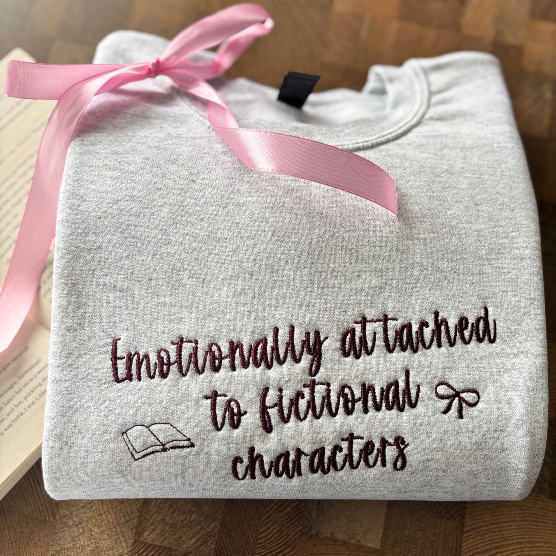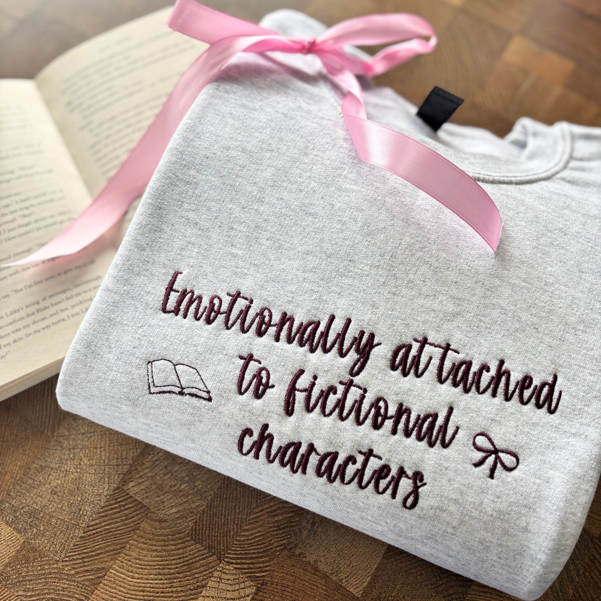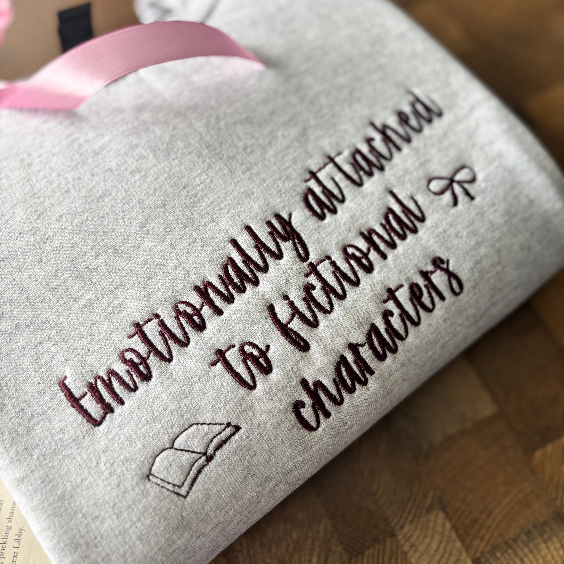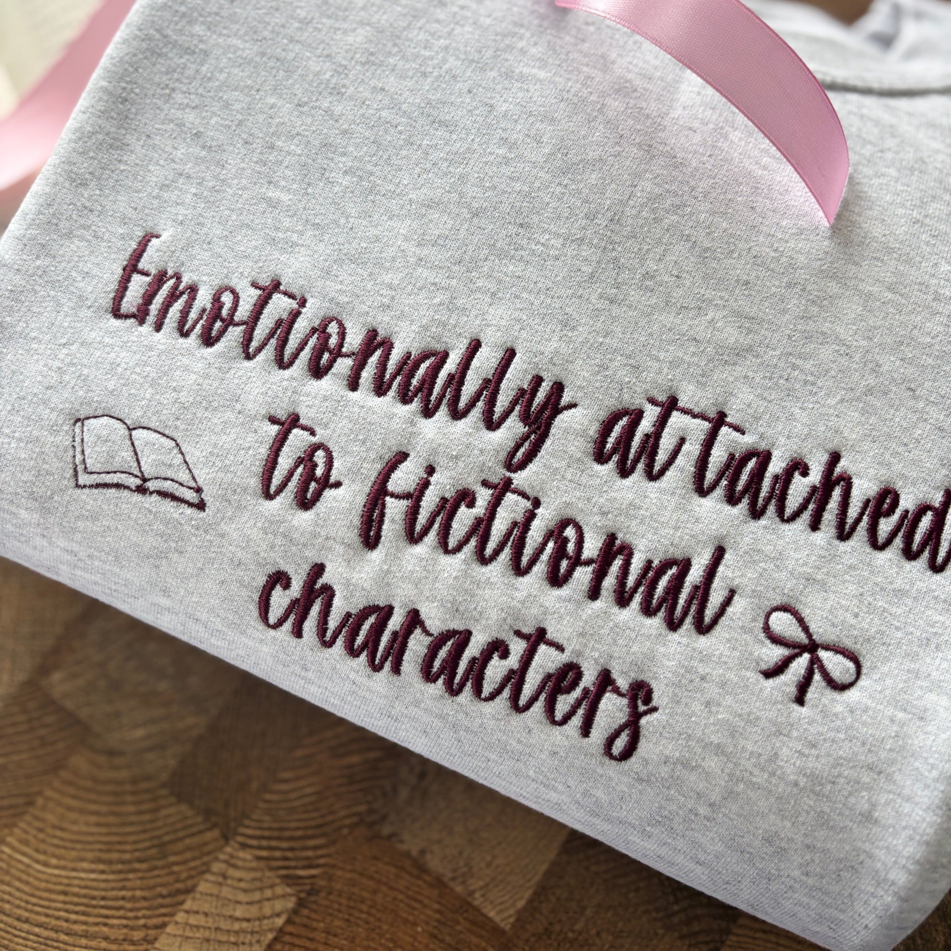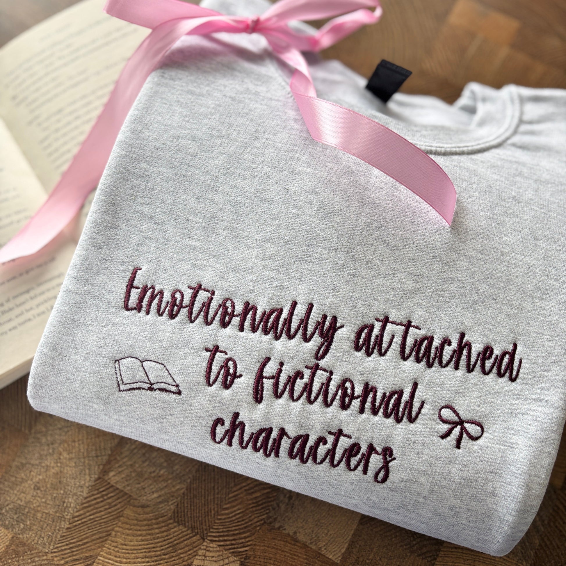 EMOTIONALLY ATTACHED TO FICTIONAL CHARACTERS EMBROIDERED SWEATSHIRT