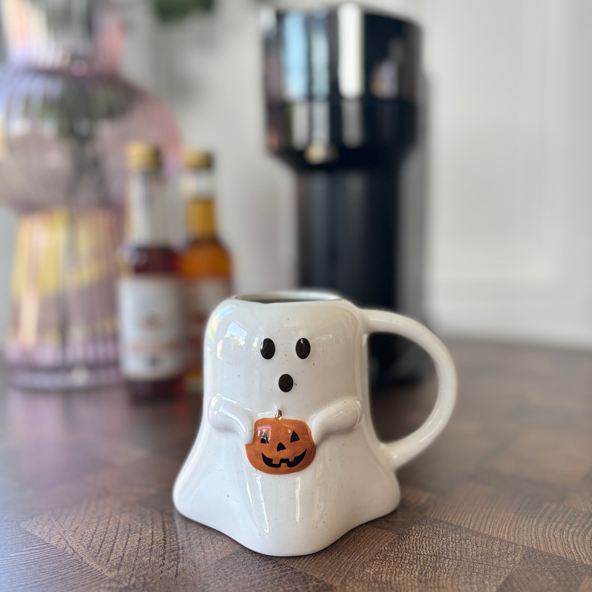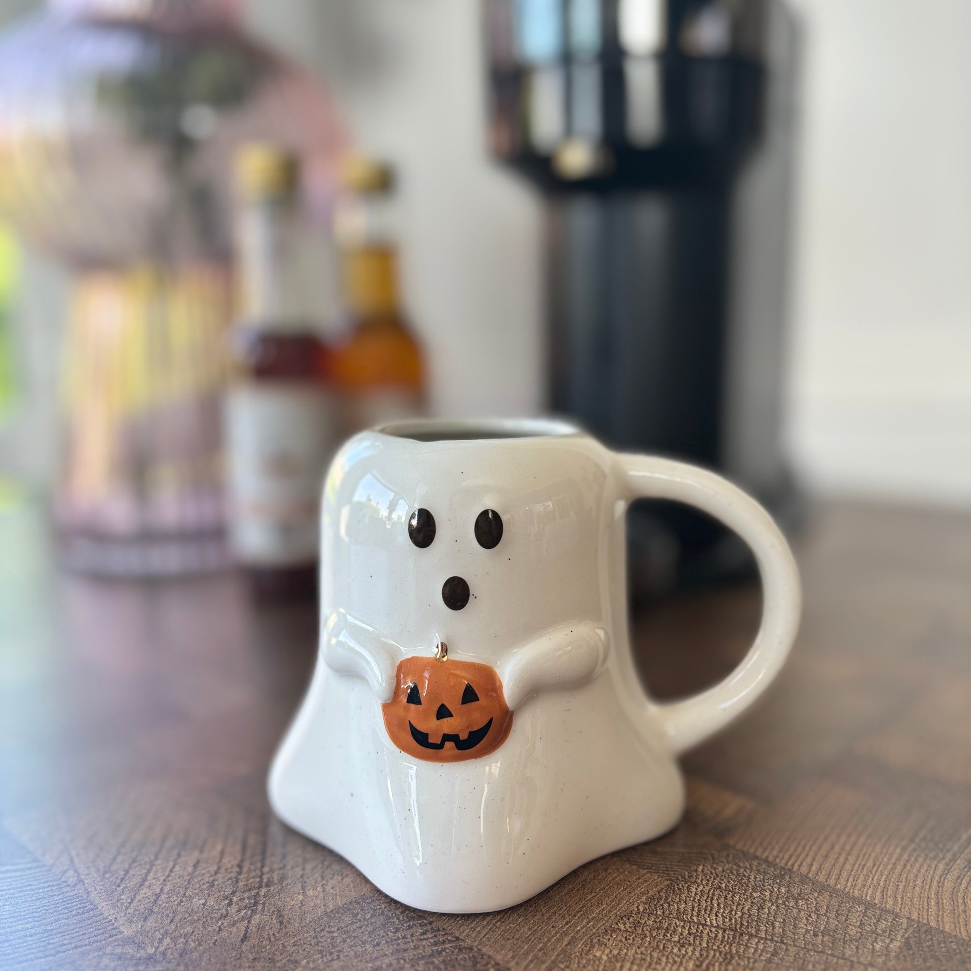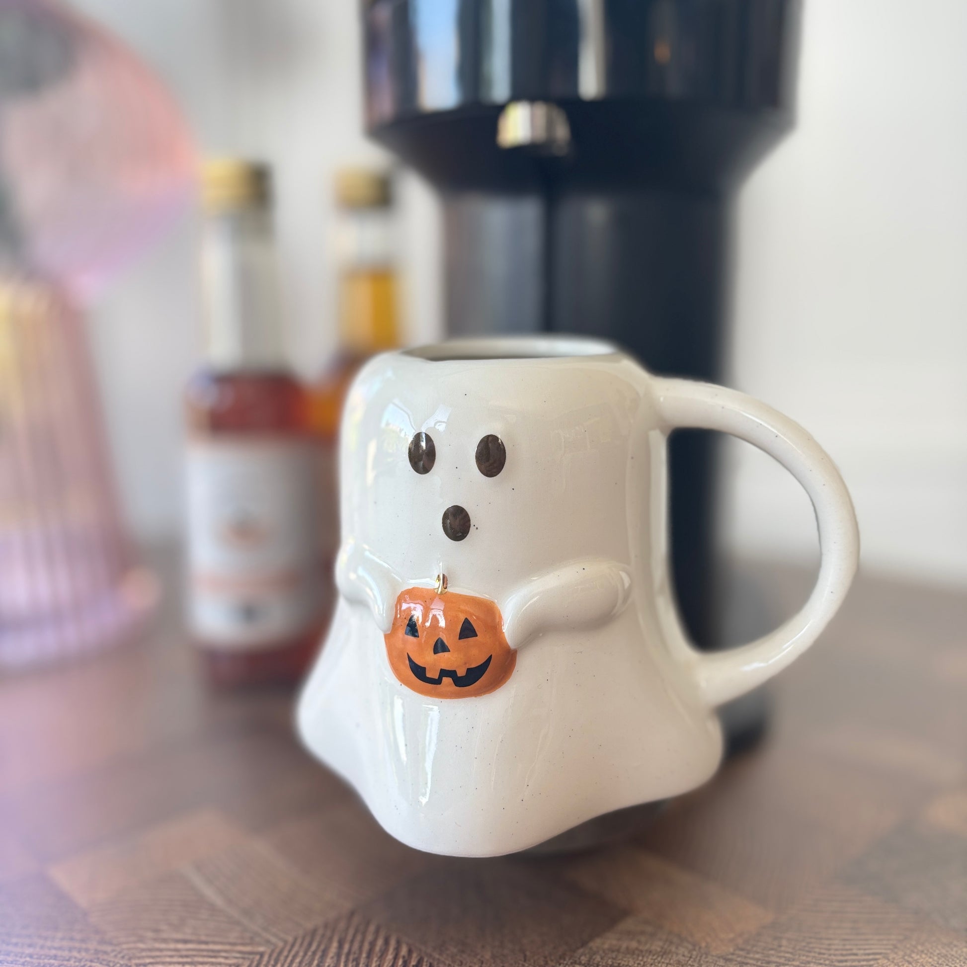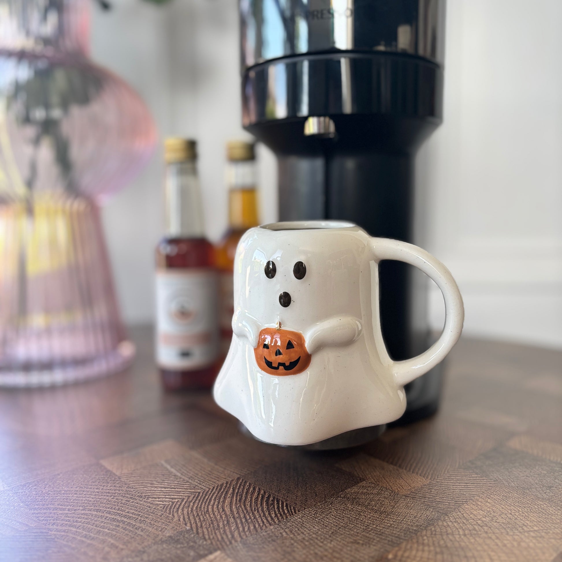 This adorable ghost mug, clutching a charming pumpkin, brings a playful touch to your drinkware collection π Standing 10.5cm tall and measuring 14cm wide by 11.5cm deep, it holds up to 400ml of your favourite beverage. Perfect for cozying up with a spooky-themed drink, itβs sure to add fun and festive spirit to your day.