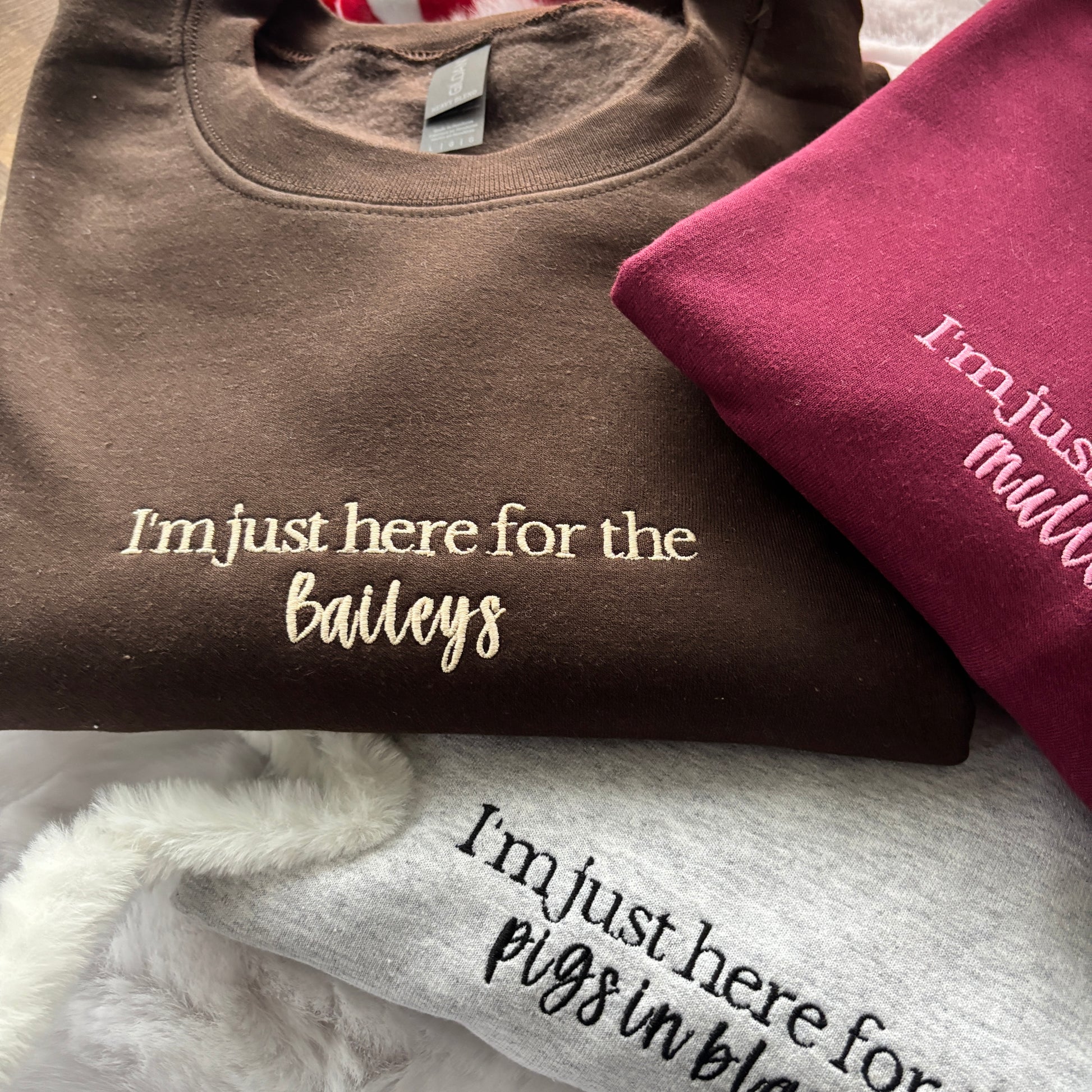 I'M JUST HERE FOR THE SLOGAN CHRISTMAS EMBROIDERED SWEATSHIRT