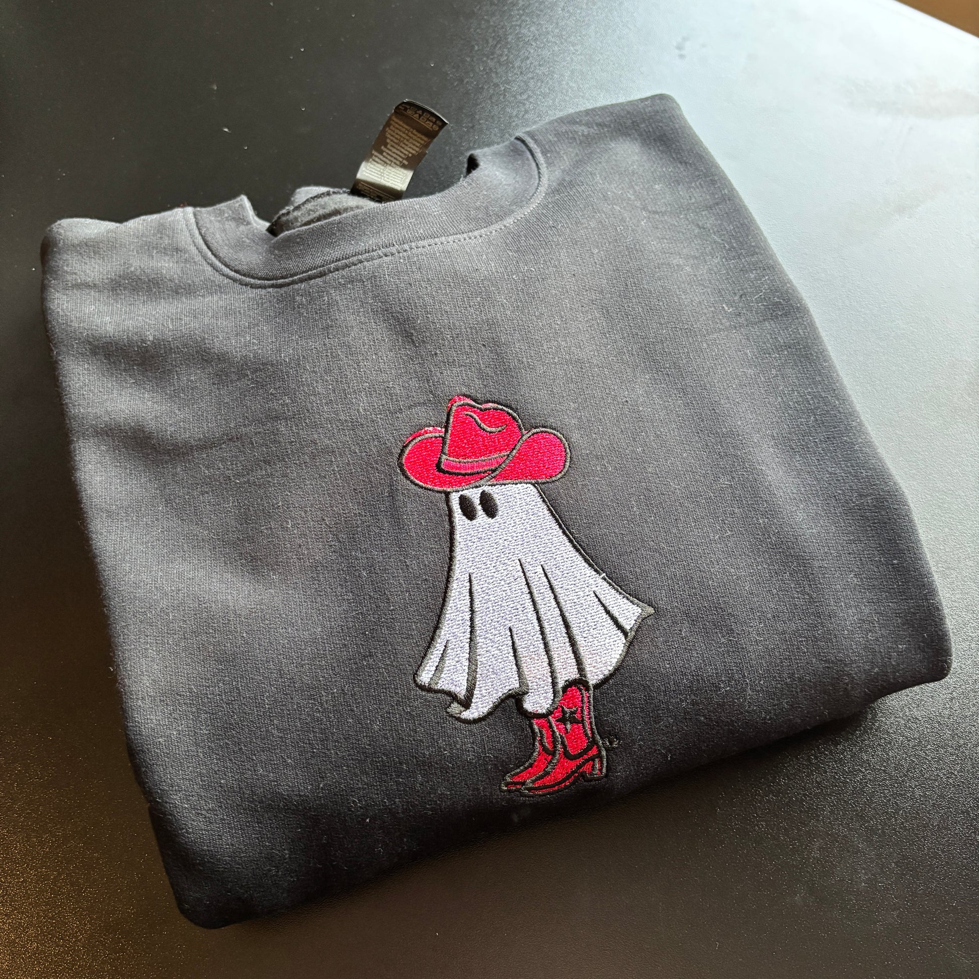 LARGE BLACK COWBOY GHOST EMBROIDERED SWEATSHIRT *SECONDS*