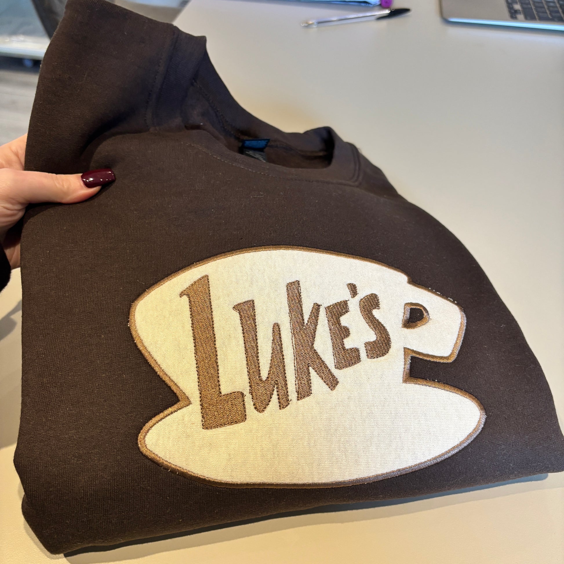 LARGE CHOC LUKE'S APPLIQUE EMBROIDERED SWEATSHIRT *SAMPLE*