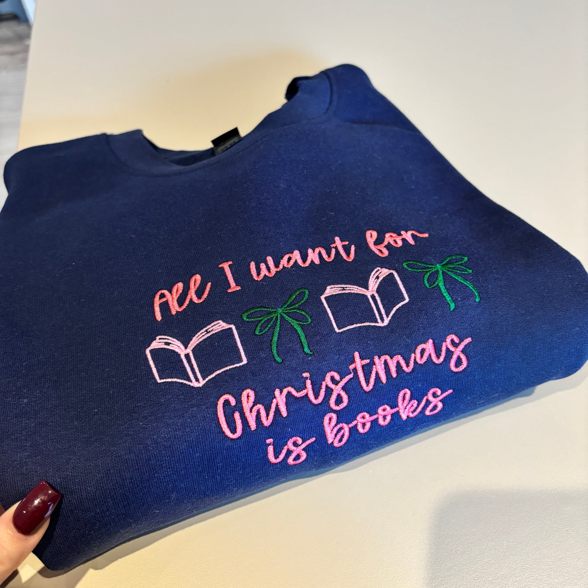 LARGE NAVY ALL I WANT FOR XMAS EMBROIDERED SWEATSHIRT *SAMPLE*
