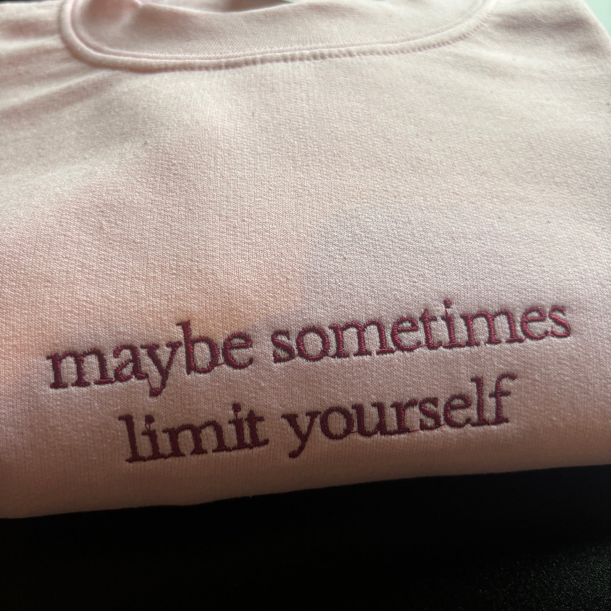 LARGE PINK LIMIT YOURSELF EMBROIDERED SWEATSHIRT *SECONDS*