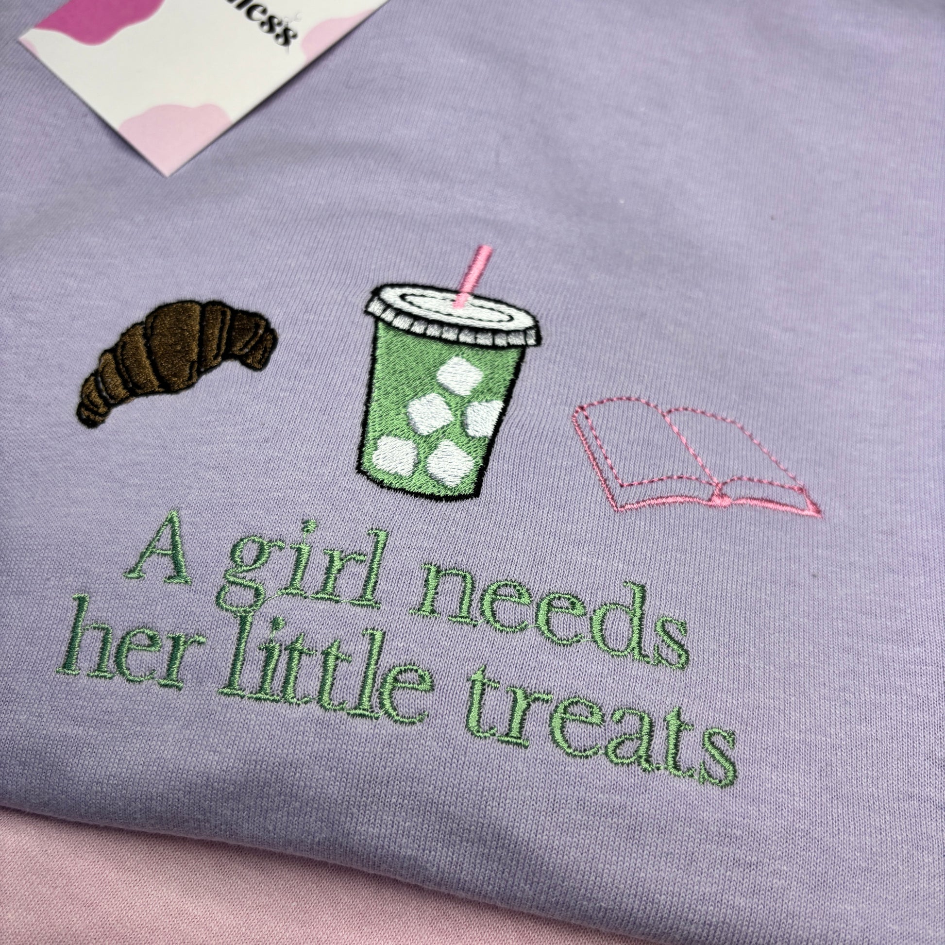 Indulge yourself with our Little Treats Embroidered T-Shirt! Choose from our matcha or iced latte embroidery to match your coffee craving and book of the day. This slightly oversized t-shirt is the perfect excuse to treat yourself 💓