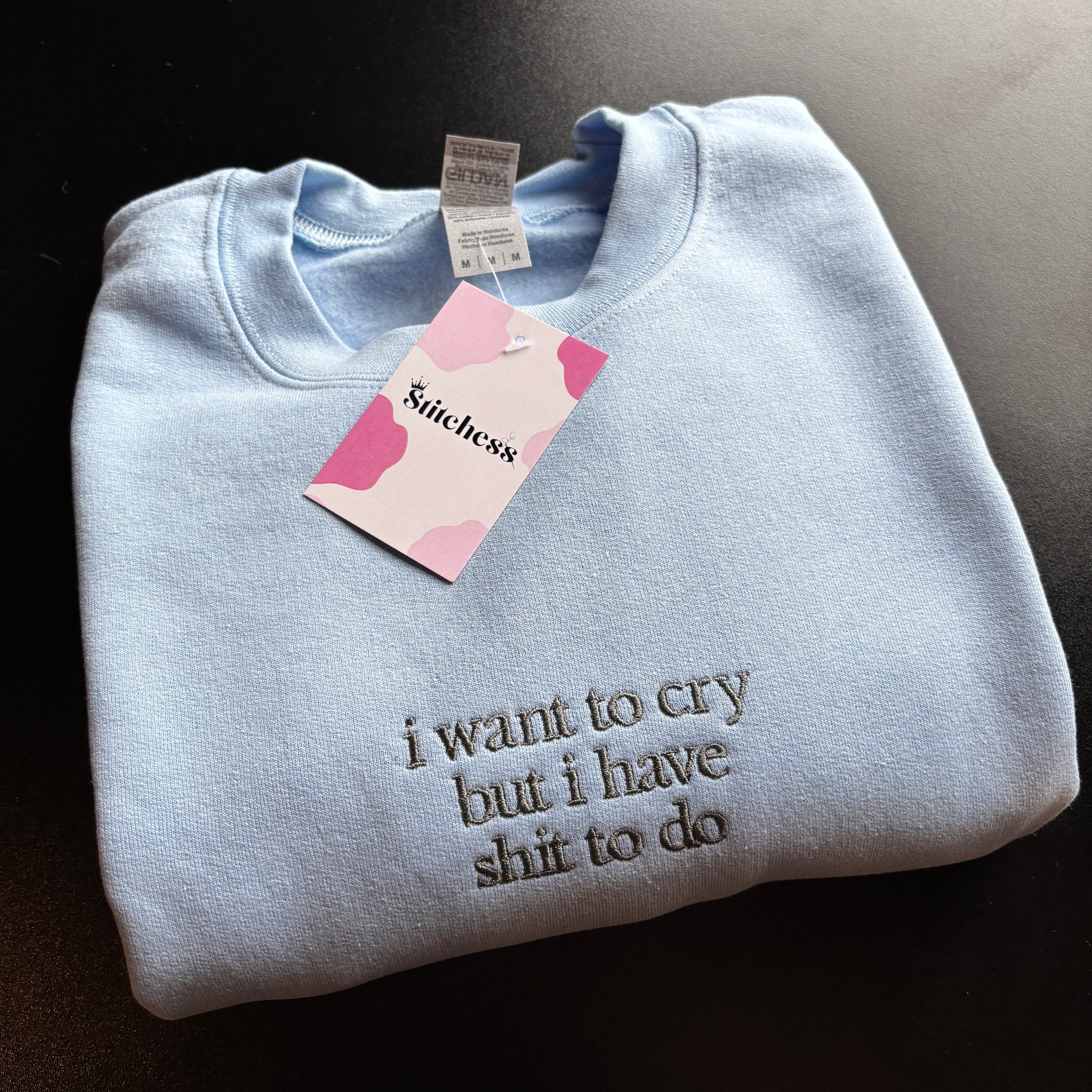 MEDIUM BLUE I WANT TO CRY EMBROIDERED SWEATSHIRT *SAMPLE*