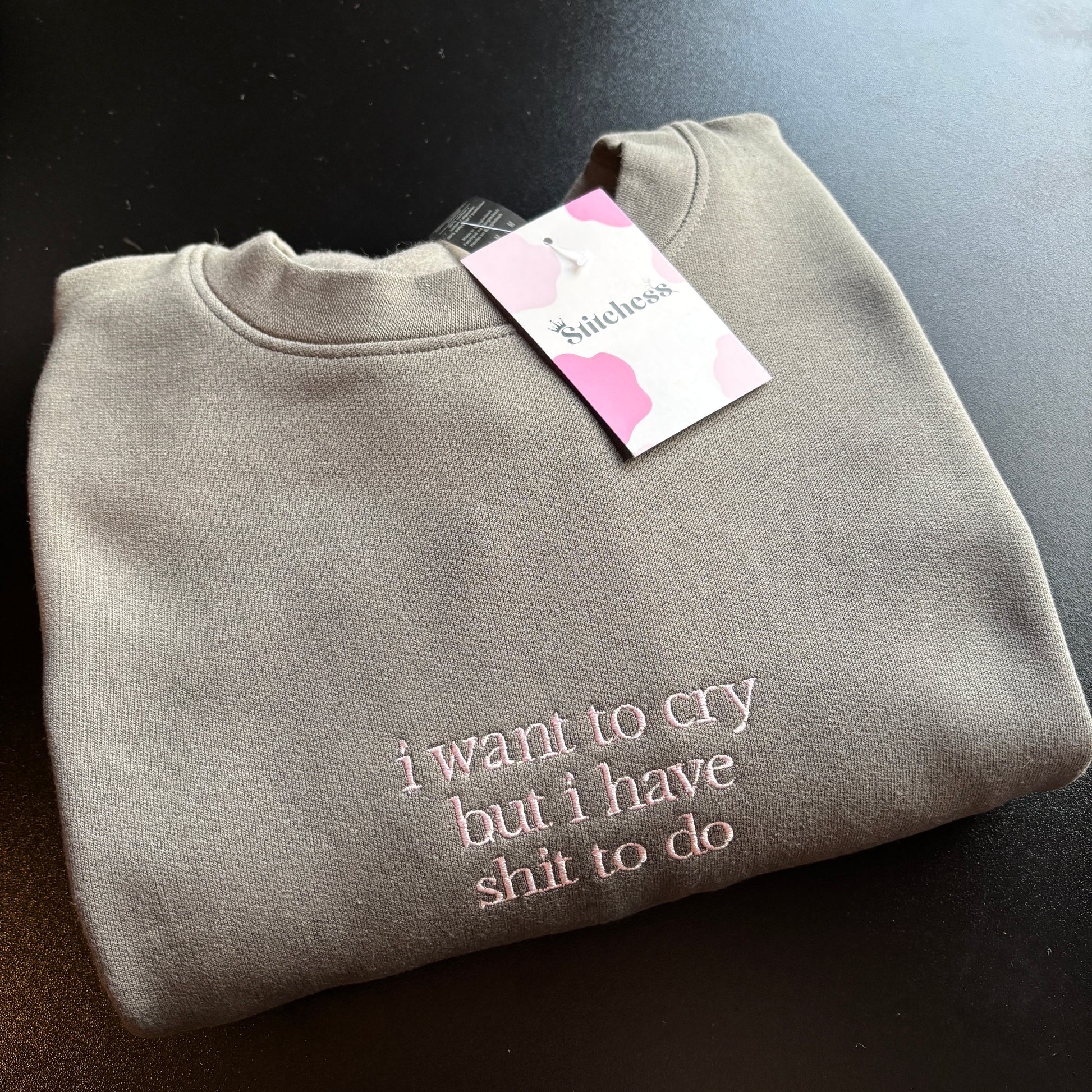 MEDIUM CHARCOAL WANT TO CRY EMBROIDERED SWEATSHIRT *SAMPLE*