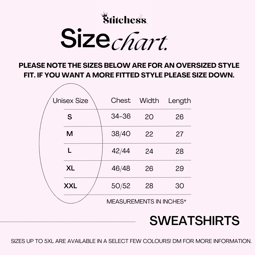 Introducing the oversized sweatshirt with an extra touch of personality! Our unique designs are embroidered by us on a sweatshirt so comfortable you won't want to take it off. Pick your favourite colour and preferred size!