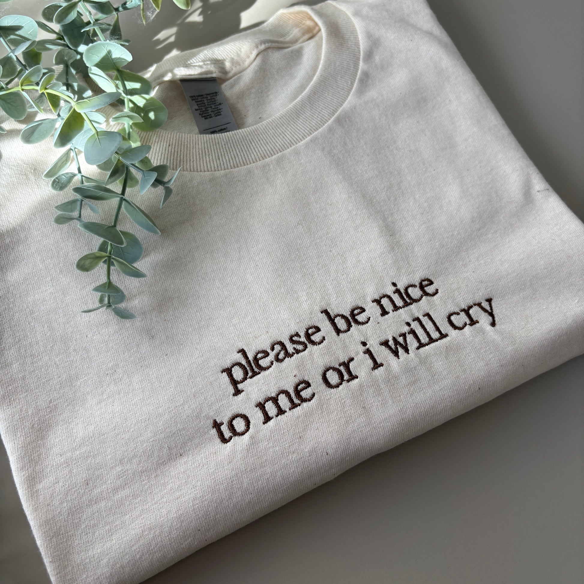 PLEASE BE NICE TO ME EMBROIDERED SWEATSHIRT/ T-SHIRT