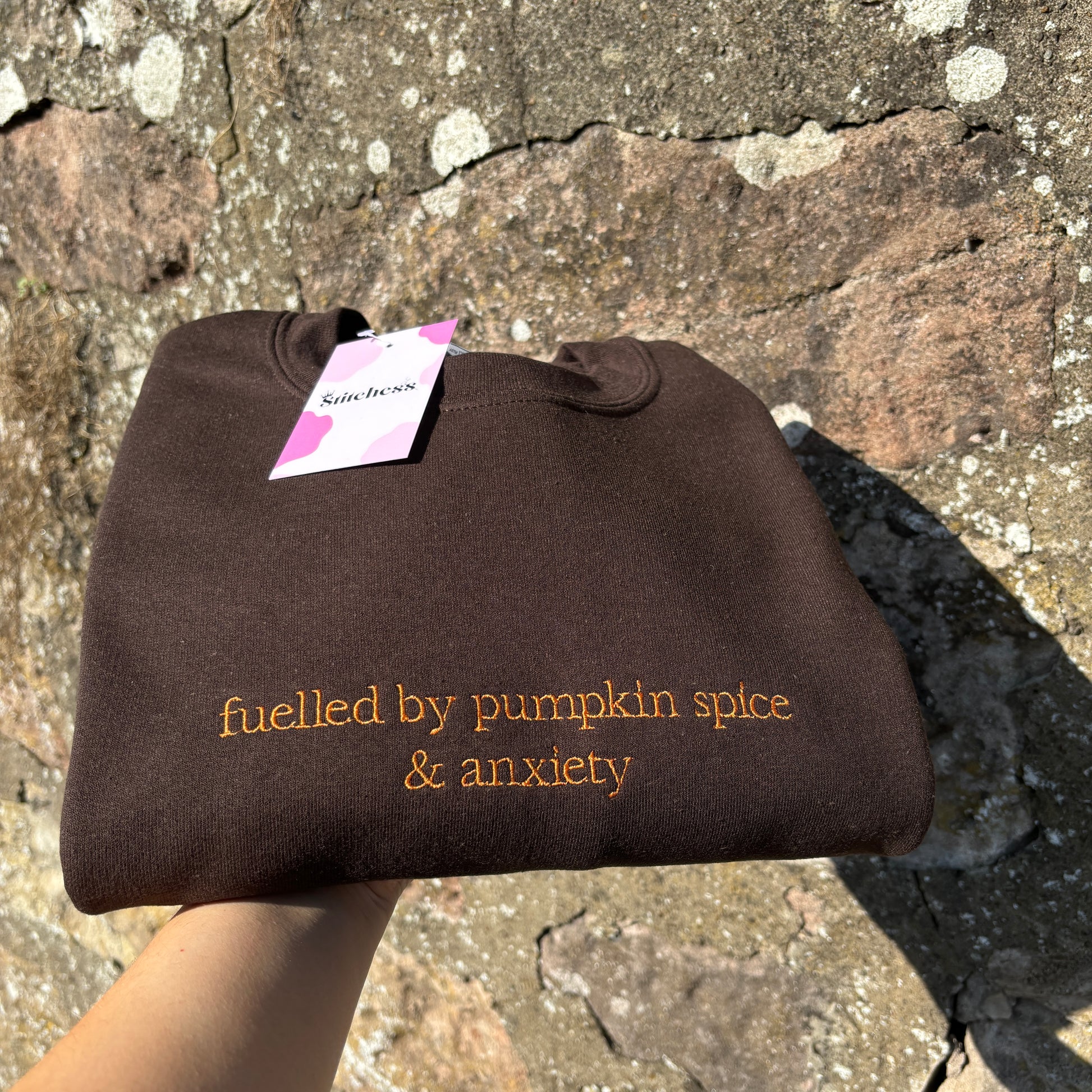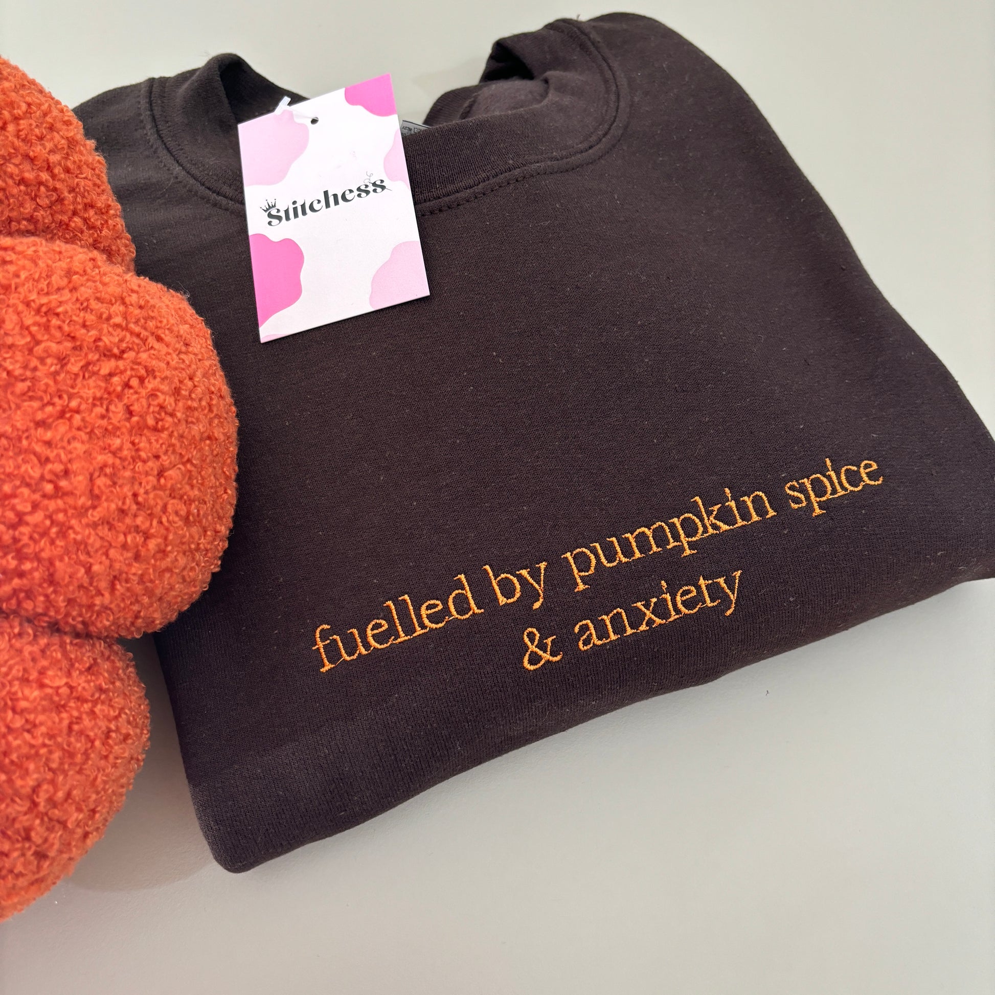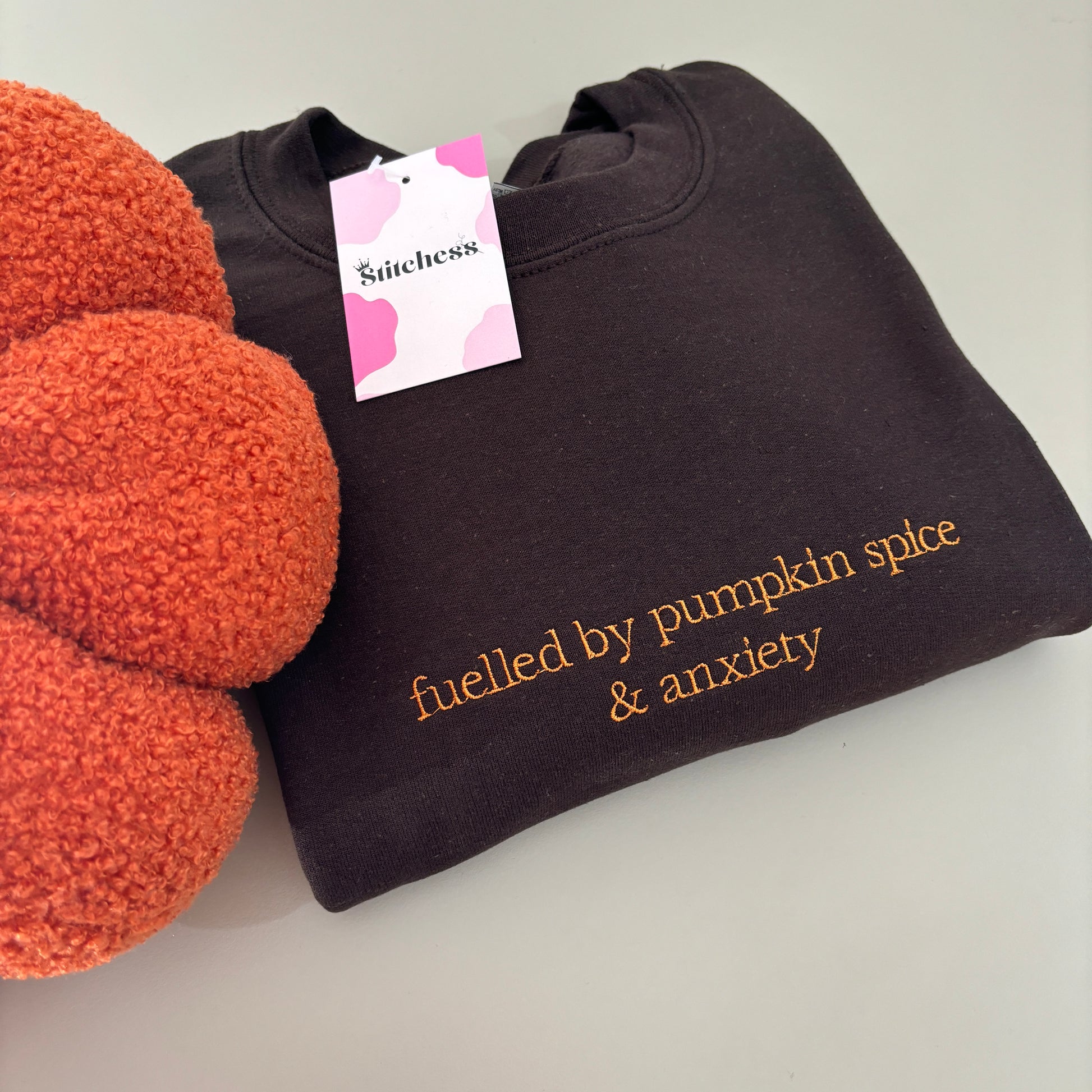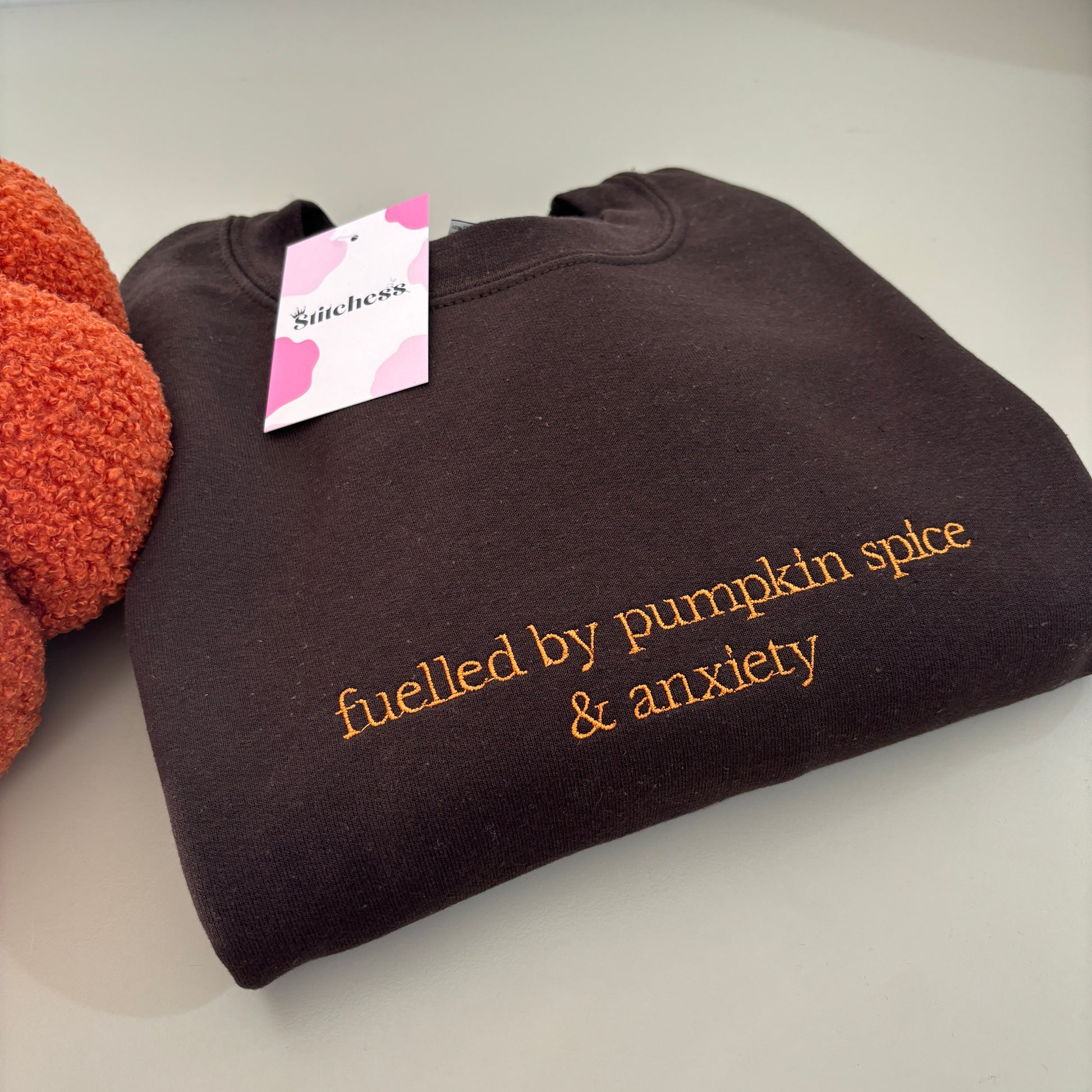 PUMPKIN SPICE & ANXIETY EMBROIDERED SWEATSHIRT