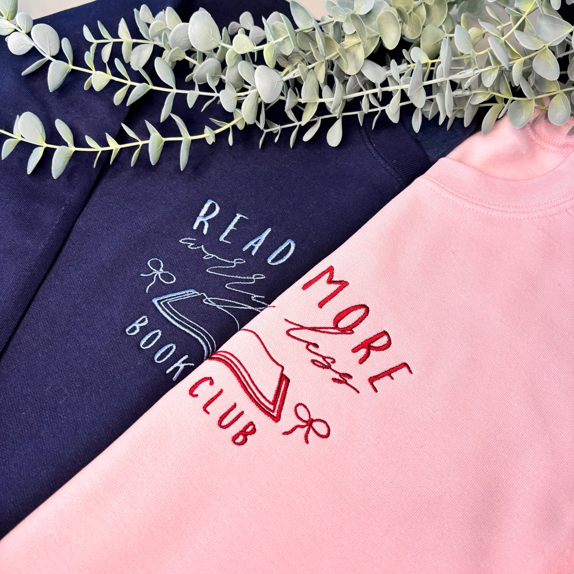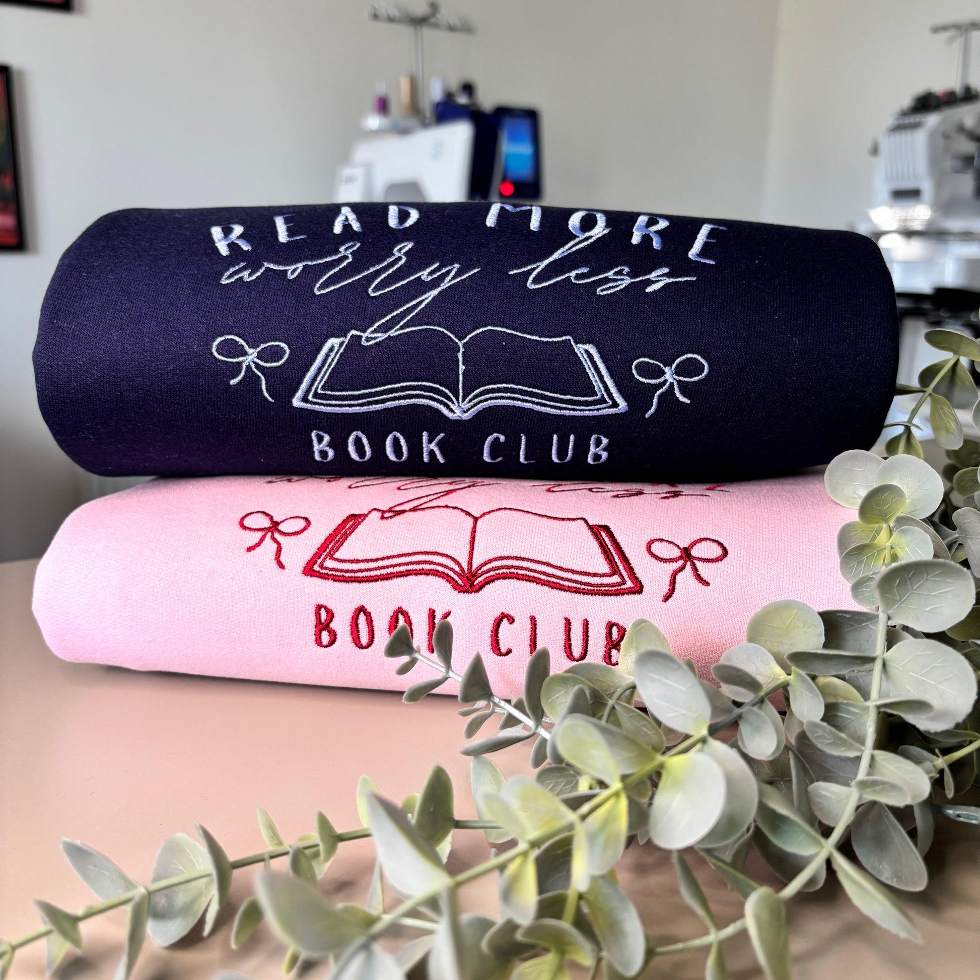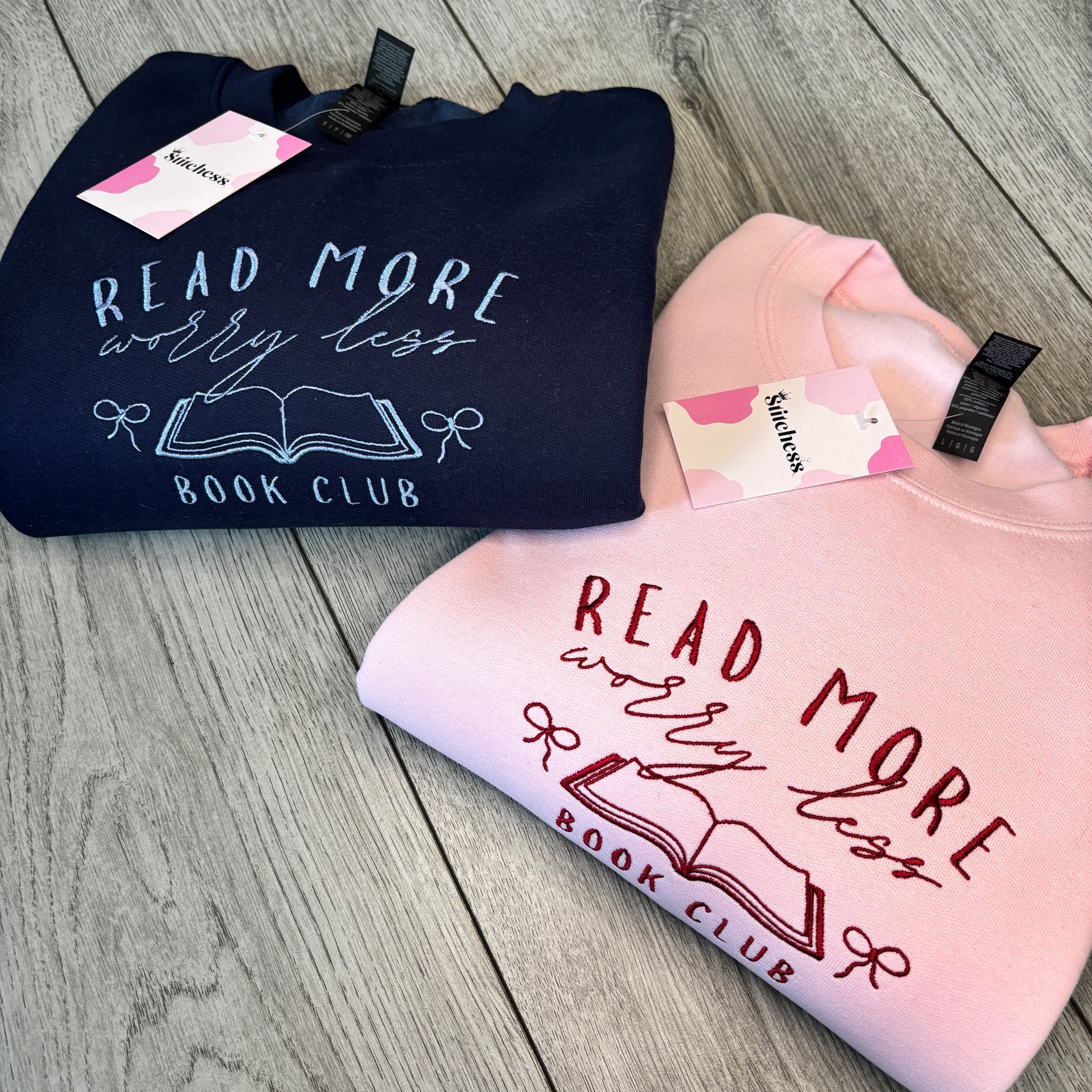 READ MORE WORRY LESS BOOKCLUB EMBROIDERED SWEATSHIRT