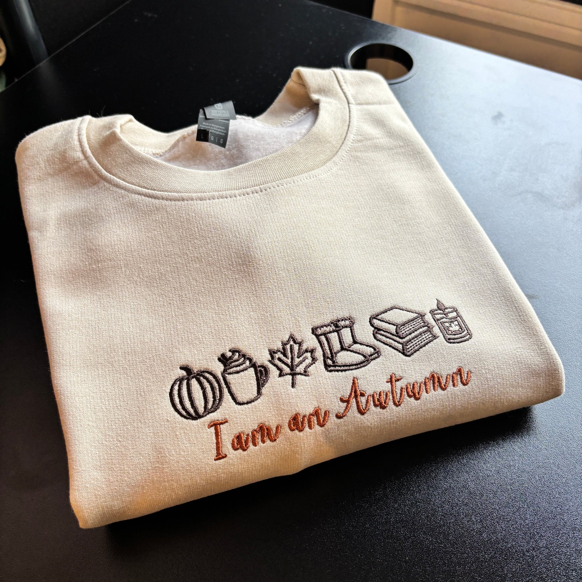 READY TO SHIP LARGE BEIGE I’M AN AUTUMN EMBROIDERED SWEATSHIRT