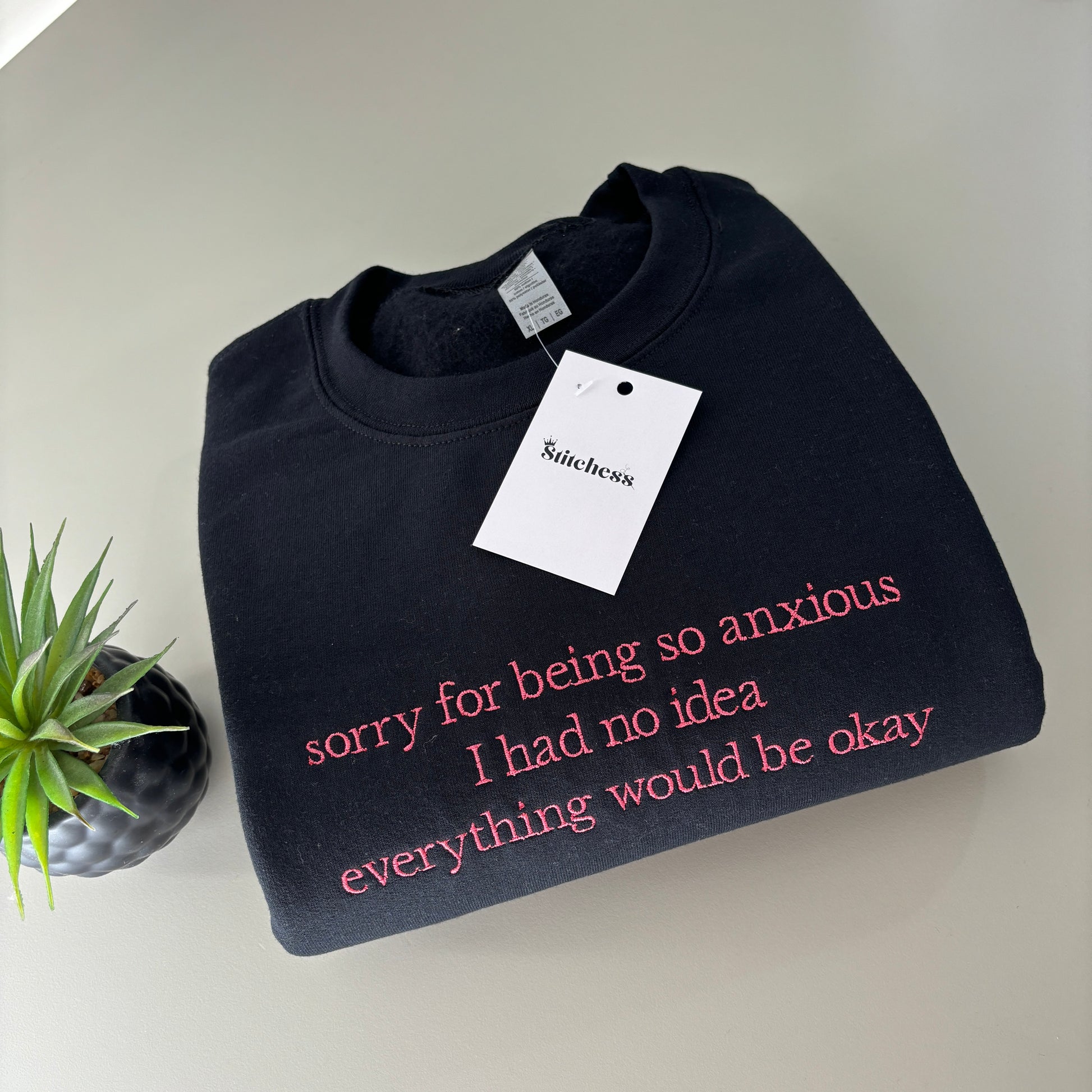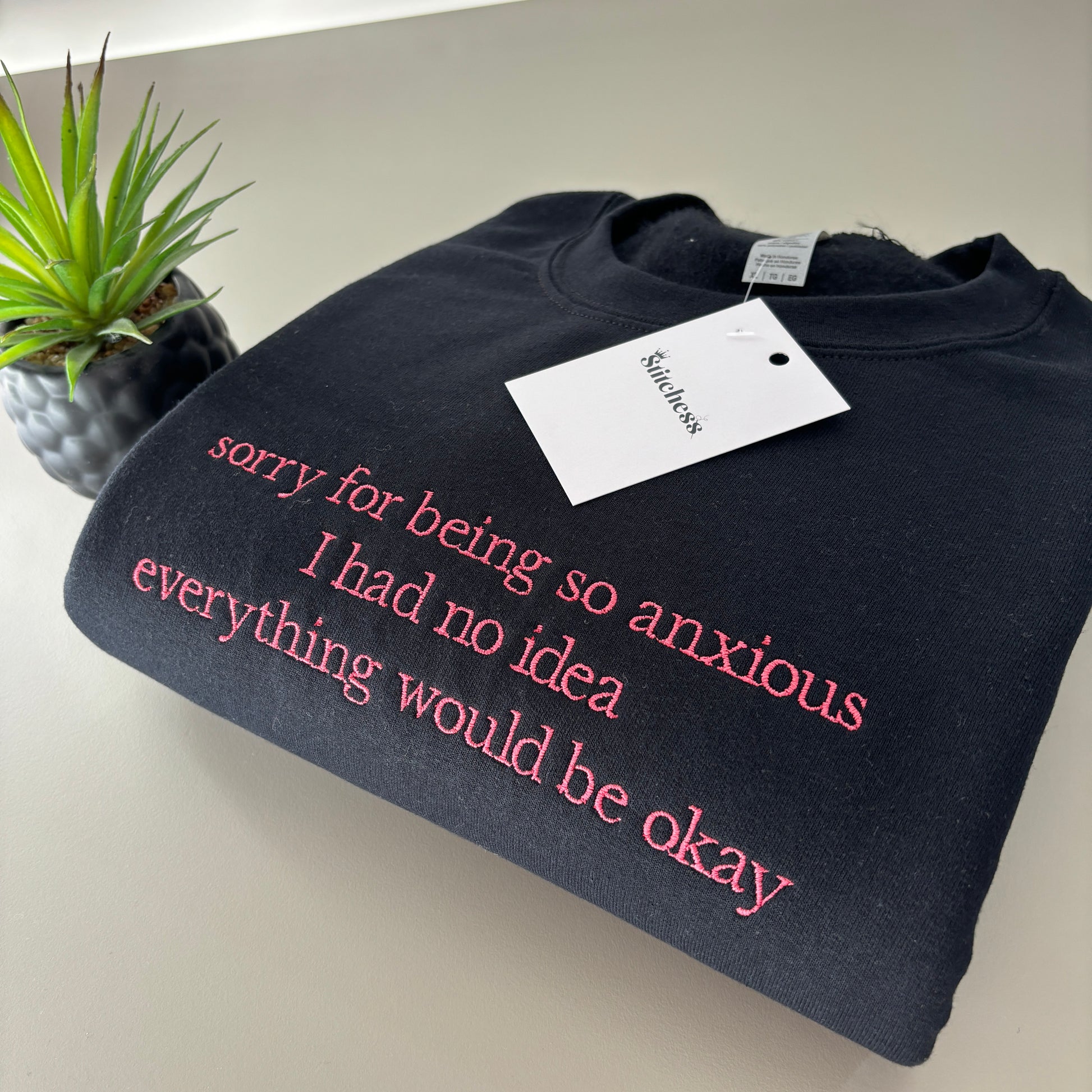 SORRY FOR BEING ANXIOUS EMBROIDERED SWEATSHIRT