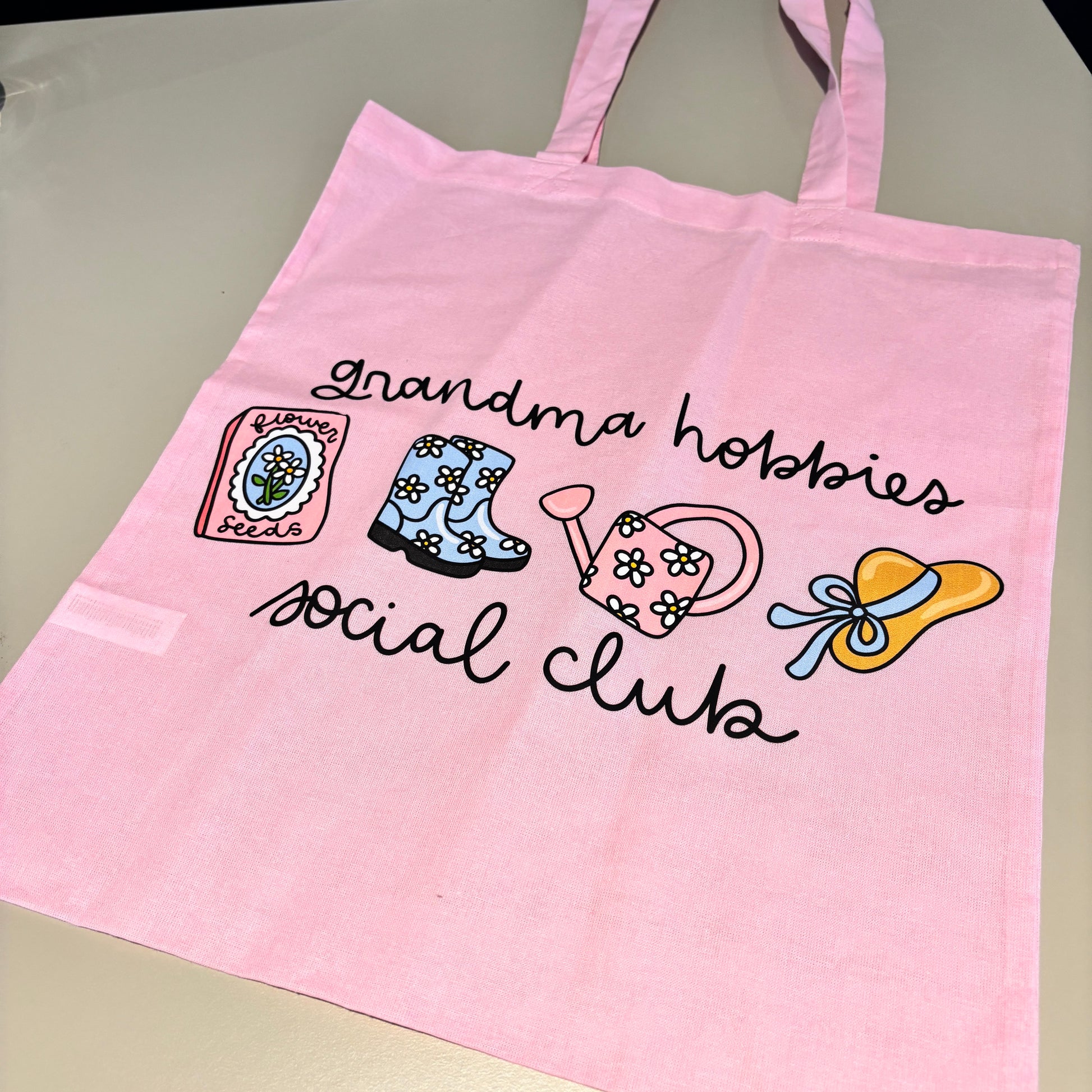 GRANDMA HOBBIES SOCIAL CLUB LIGHTWEIGHT PINK TOTE