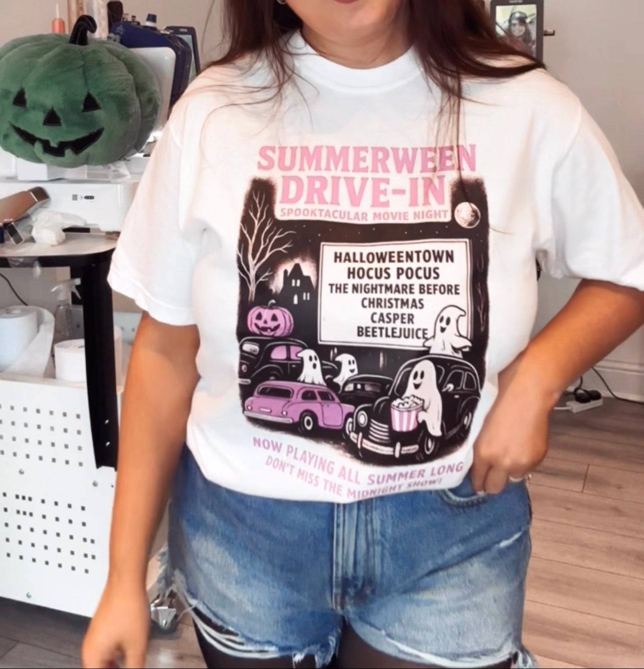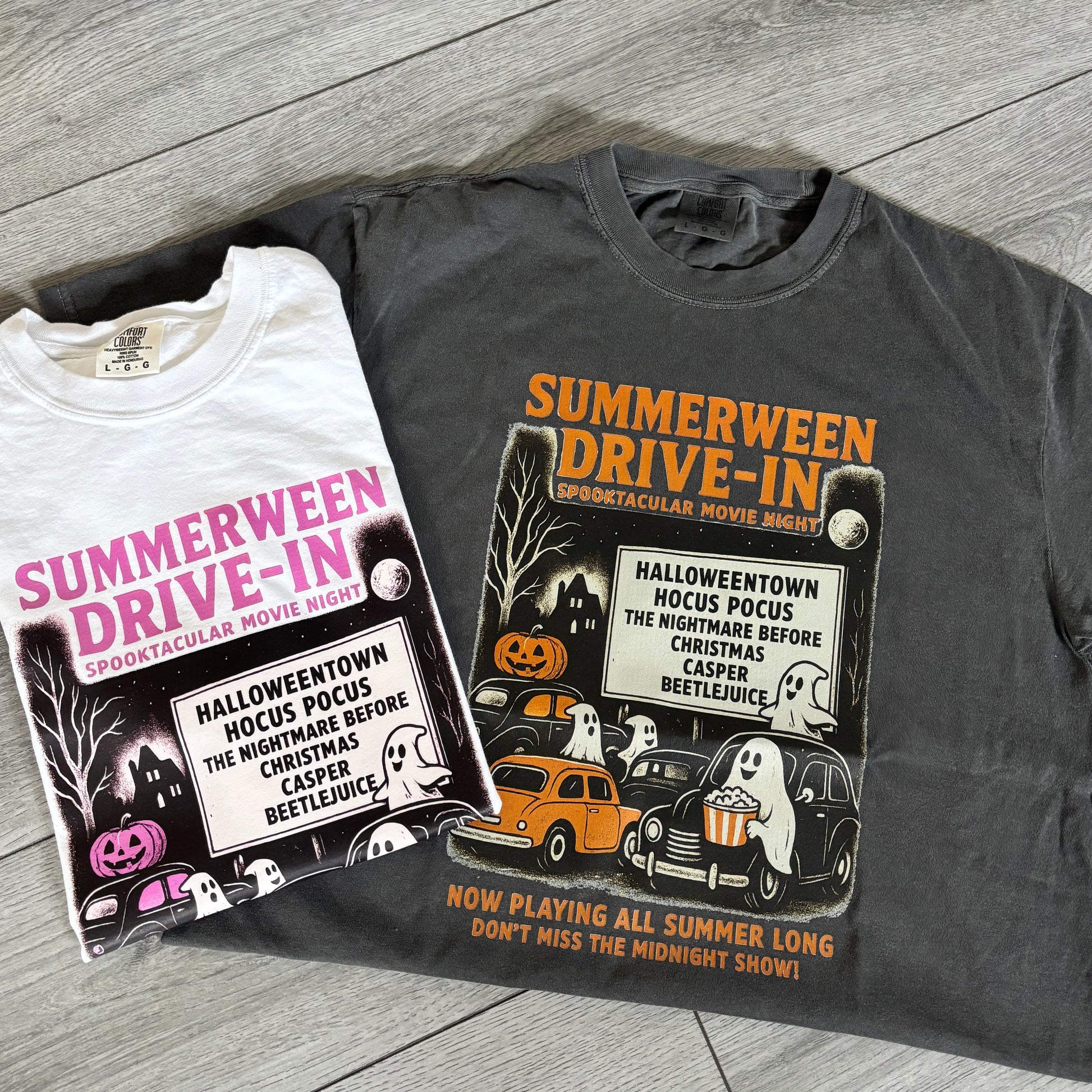 Get spooky-summer vibes with our Summerween Drive In tee! 🎀