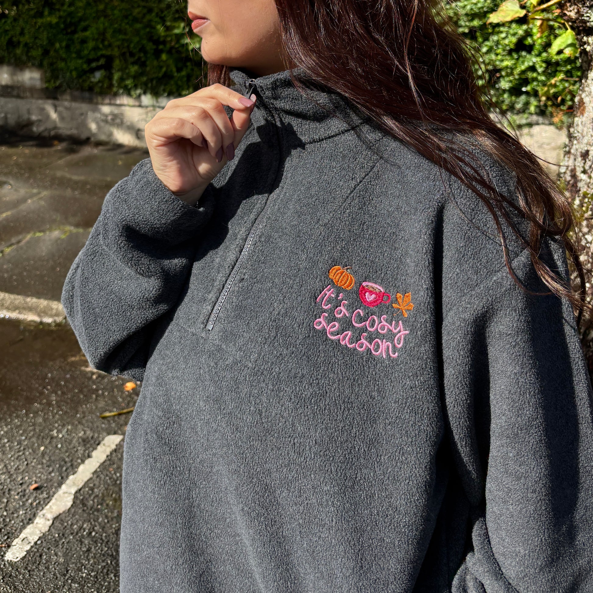 Get ready to snuggle up in style with our super cosy Embroidered Fleece! Pick your favourite from two adorable embroidered designs and enjoy the luxe warmth of heavyweight 330gsm Polartherm fleece π The 1/4 front zip makes it super easy to slip on, while elasticated cuffs and an adjustable shock cord hem keep the cosy snug just right.Β