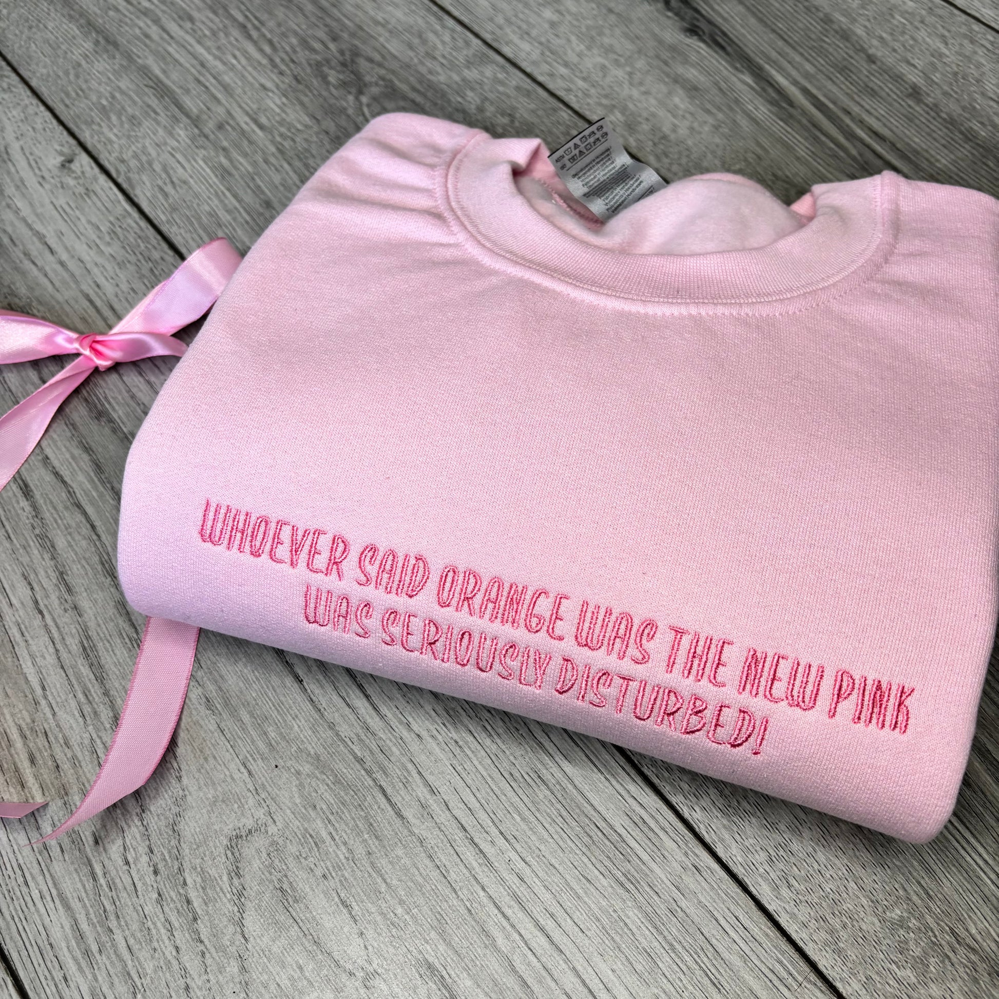 WHOEVER SAID ORANGE WAS THE NEW PINK EMBROIDERED SWEATSHIRT