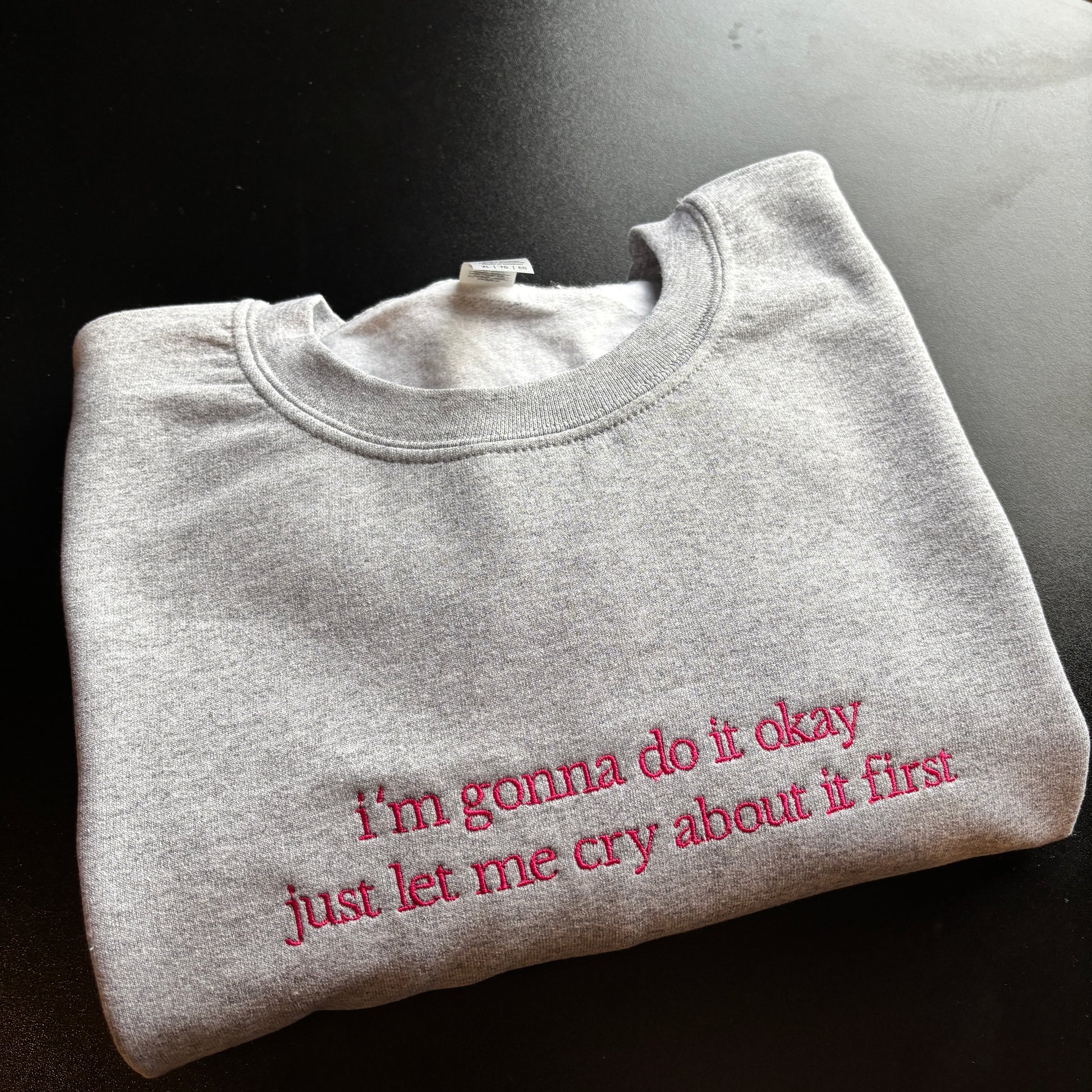 XL MARL LET ME CRY ABOUT IT FIRST EMBROIDERED SWEATSHIRT *SECONDS*